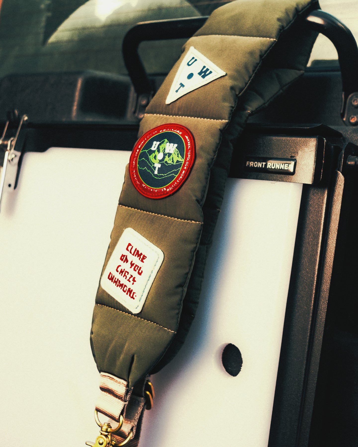 標誌性的繡章為戶外造型營造焦點。實用與時尚兼備的Topologie X Universal Works 絎縫背帶採用蓬鬆而簡約的設計,為肩膊帶來額外的舒適感。其柔軟觸感適合搭配任何Wares System™包款,無縫加持日常旅途。